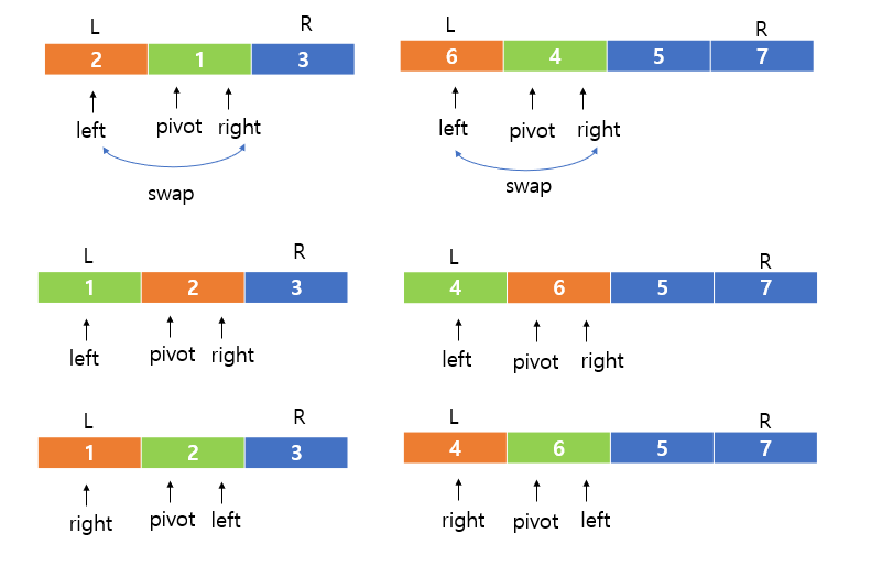 - left가 R보다 작다면 left부터 R까지 다시 위 과정을 재귀적으로 반복한다.