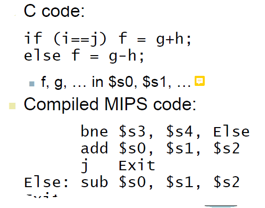 bne $t0, $zero, L # if($t0!=0) 레이블 L로 이동; -> 즉, 레이블 L은 s1 <s2일 때 실행하는 레이블