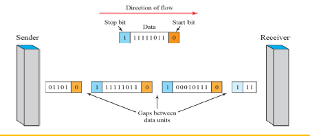 : 시작 부분에 1개의 시작비트(0)와 각 바이트 끝에 하나 이상의 정지 비트(1)를 보낸다.