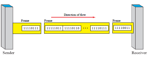 문자열을 한 프레임으로 만들어 일시에 전송하는 방식.