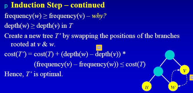 (문자 v가 나올 빈도 * 문자 v의 비트 길이)의 최소를 찾는 게 Huffman Code의 핵심