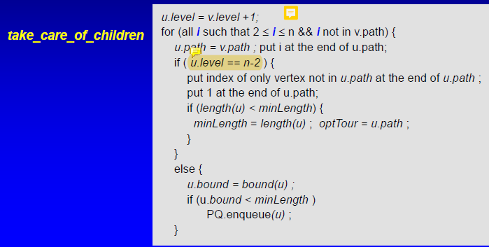 -> state space tree의 깊이 k에서, 각 노드는 (k+1)개의 정점이 방문된 상태이다.