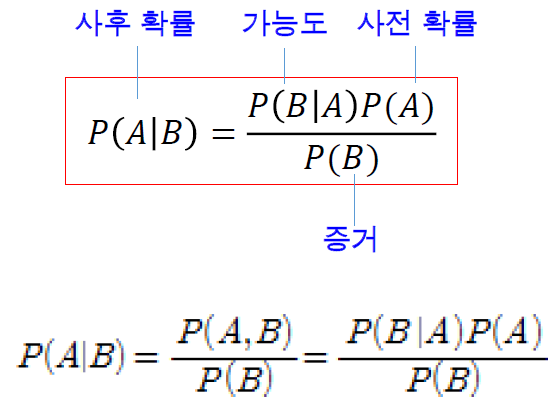 : 조건부 확률을 구하는 공식을 베이즈 정리라고 한다