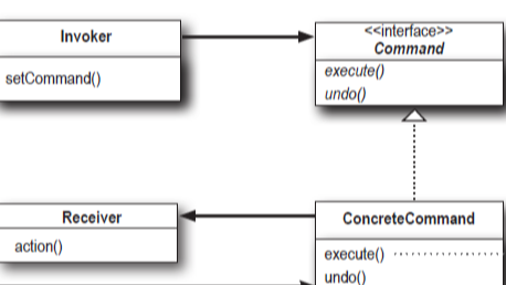 - ConcreteCommand: 실제 실행되는 기능 구현(Command 인터페이스 구현)