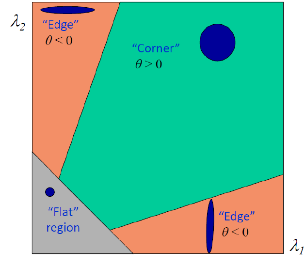 corner: 모든 방향에서 변화량(gradient)이 크다