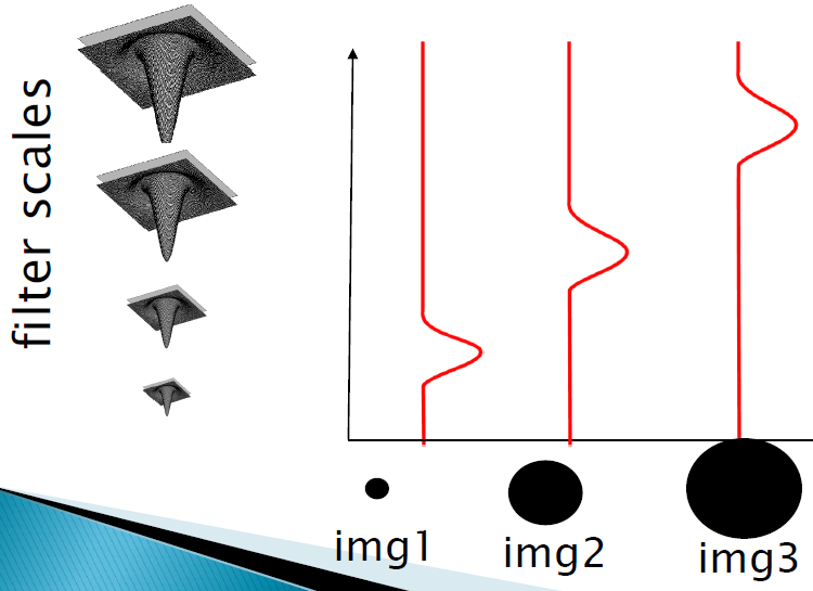 큰 이미지는 큰 필터에서 높은 값을 가지게 된다.