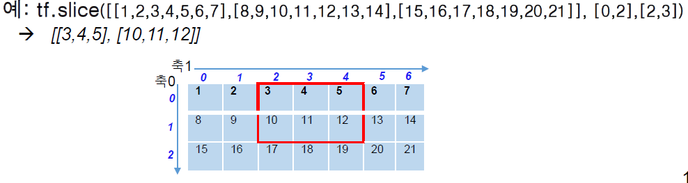 4. slice(텐서, [축 0의 추출시작위치, 축 1의 추출시작위치, ... , 축 d-1의 추출 시작위치],