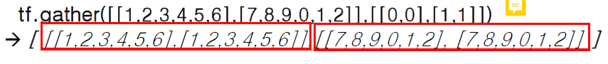11. gatehr(텐서, [첨자들]) : 지정된 첨자(index)의 원소들로 이루어진 텐서를 생성