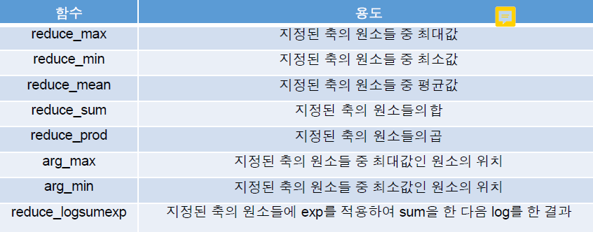 - 축의 인자는 0부터 시작 (shape의 앞에서부터 축 0, 축 1, 축 2...)