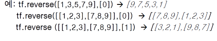 9. reverse(텐서, [축]) : 텐서의 축을 기준으로 원소를 역순으로 배열