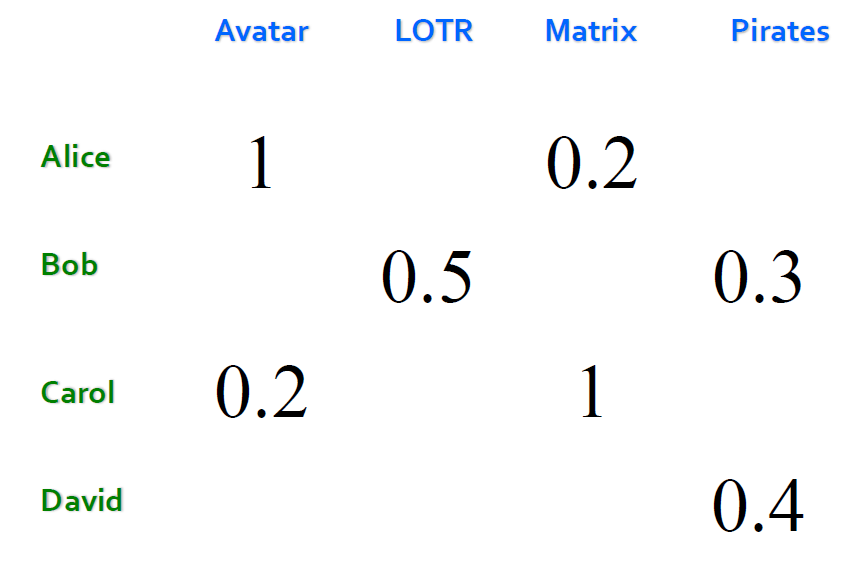 - sparsity: 같은 아이템에 평가를 준 유저를 찾기 힘들다