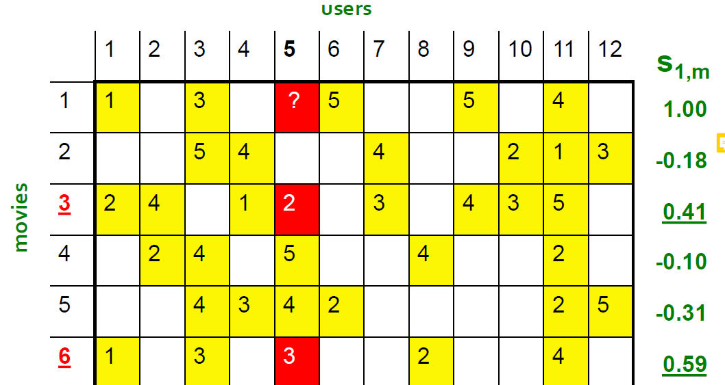r(x)을 유저 x의 ratings vector, r(y)을 유저 y의 rating vector라고 할 때,