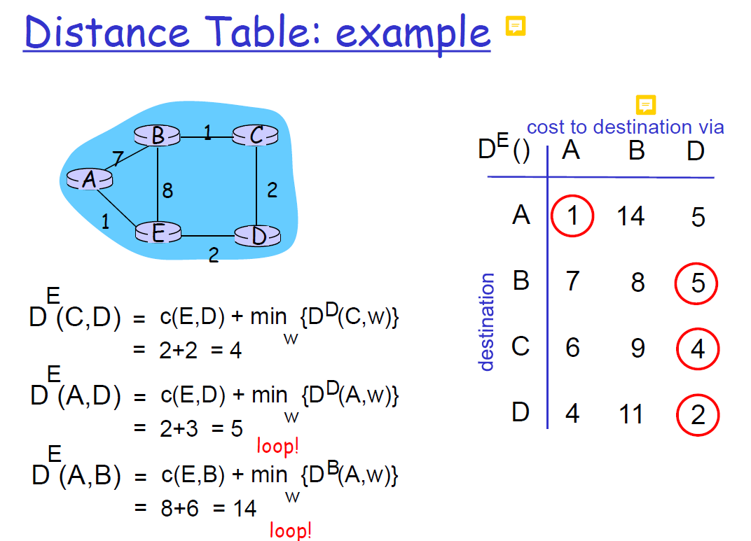 -> via는 출발지와 바로 연결된 노드만 가능. - 전체 네트워크 topology는 알지 못하고, 본인이 가진 정보와 이웃 라우터의 정보를 가지고
