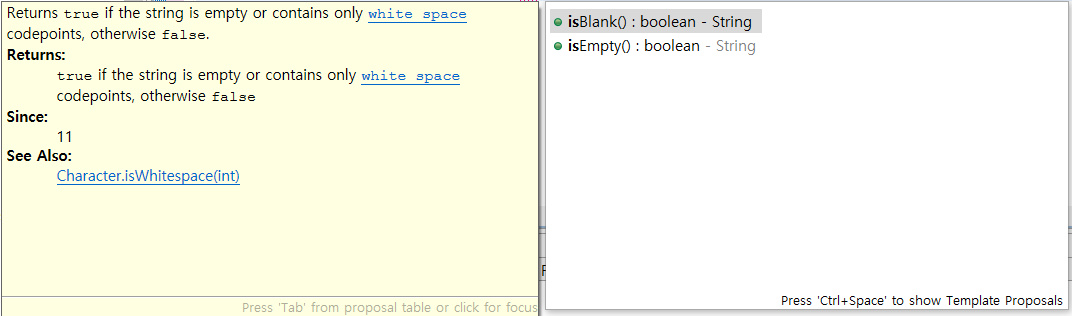 설명을 보면 문자열이 빈 값이거나 whitespace인 경우에는 true를 반환한다고 되어 있습니다.