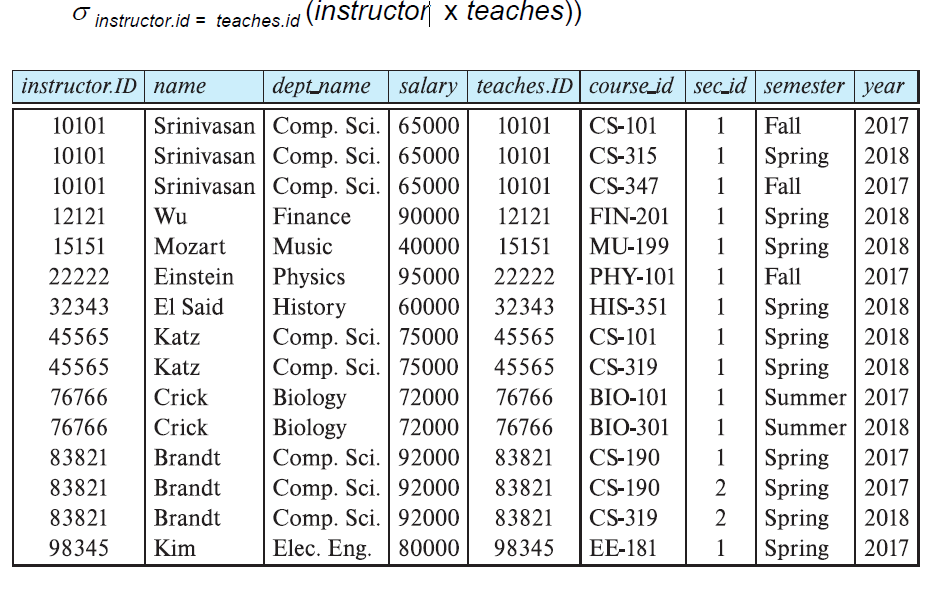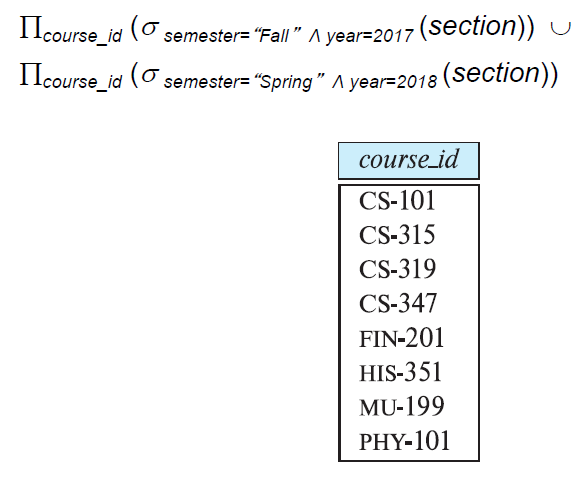 릴레이션은 집합이므로 중복된 행은 결과에서 제거됨.