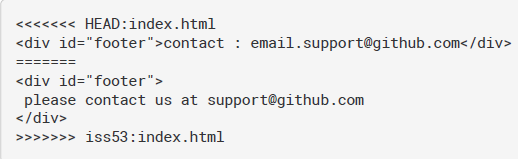 * 가끔씩 3-way-Merge가 실패할 때도 있다. Merge하는 두 브랜치에서 같은 파일의 한 부분을 동시에 수정한 상태라면 git은 해당 부분을 Merge하지 못한다. 이런 상황을 충돌했다고 한다.