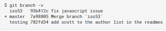 2. git branch -v 명령을 실행하면 브랜치마다 마지막 커밋 메시지도 함께 보여준다.