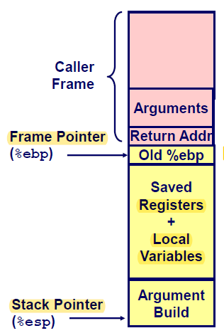 caller의 프레임 포인터caller 스택 프레임에 들어있는 것들:리턴 주소 콜에 대한 인자들